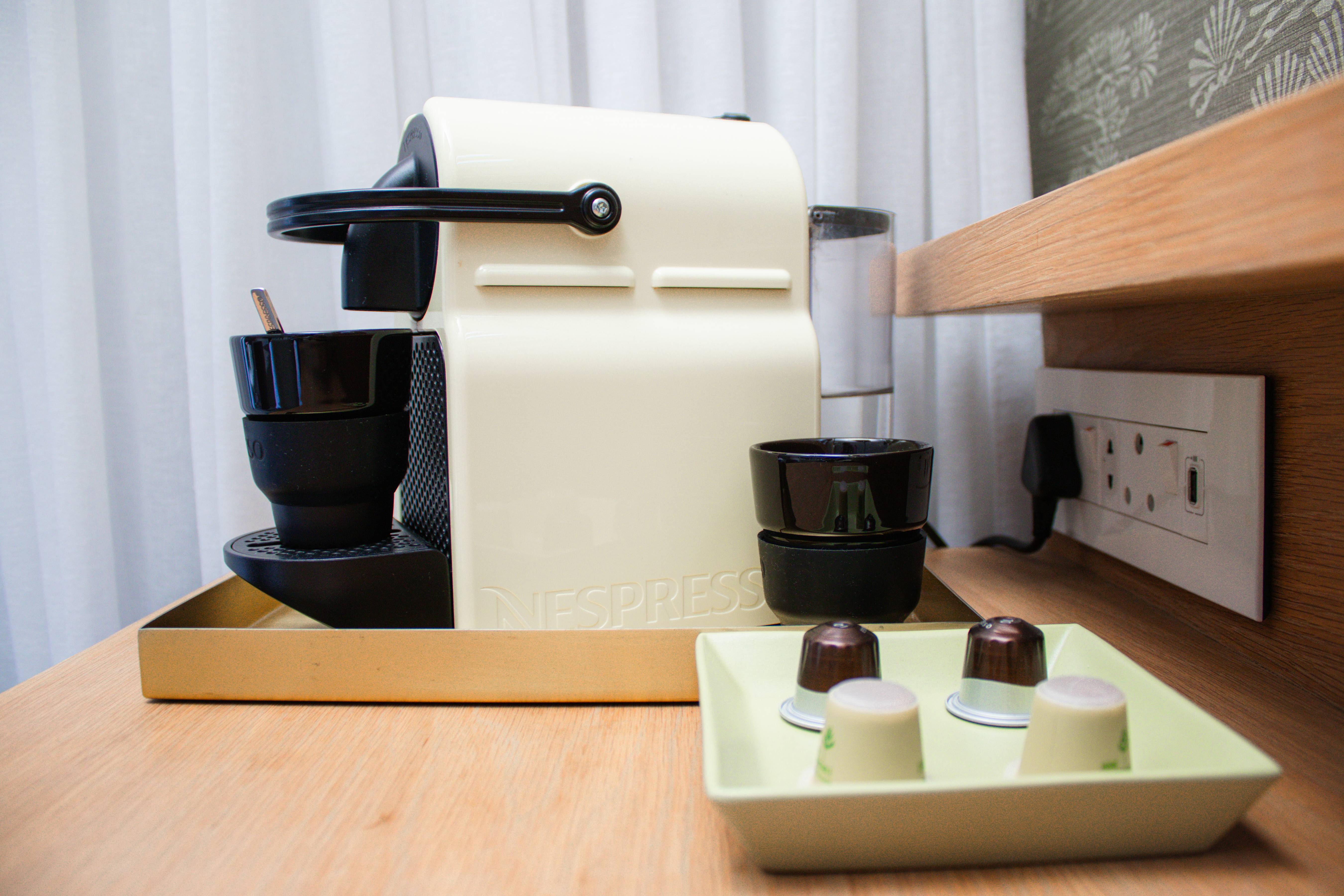 (23 m²) – Luxury room situated on the ground floor with stunning ocean views, abundant natural light and a spacious luxury bathroom. You will be sleeping in a luxuriously comfortable extra-length King Size bed fitted with 100% cotton percale bed linen; pull back the blockout curtains and you can enjoy amazing sunrises and admire ships on the ocean at any time of day from the comfort of your bed. The only room without a private balcony but it is well designed, elegant and spacious, with a large floor to ceiling window flooding the room with natural light and a Nespresso maker in addition to our generous hospitality tray.